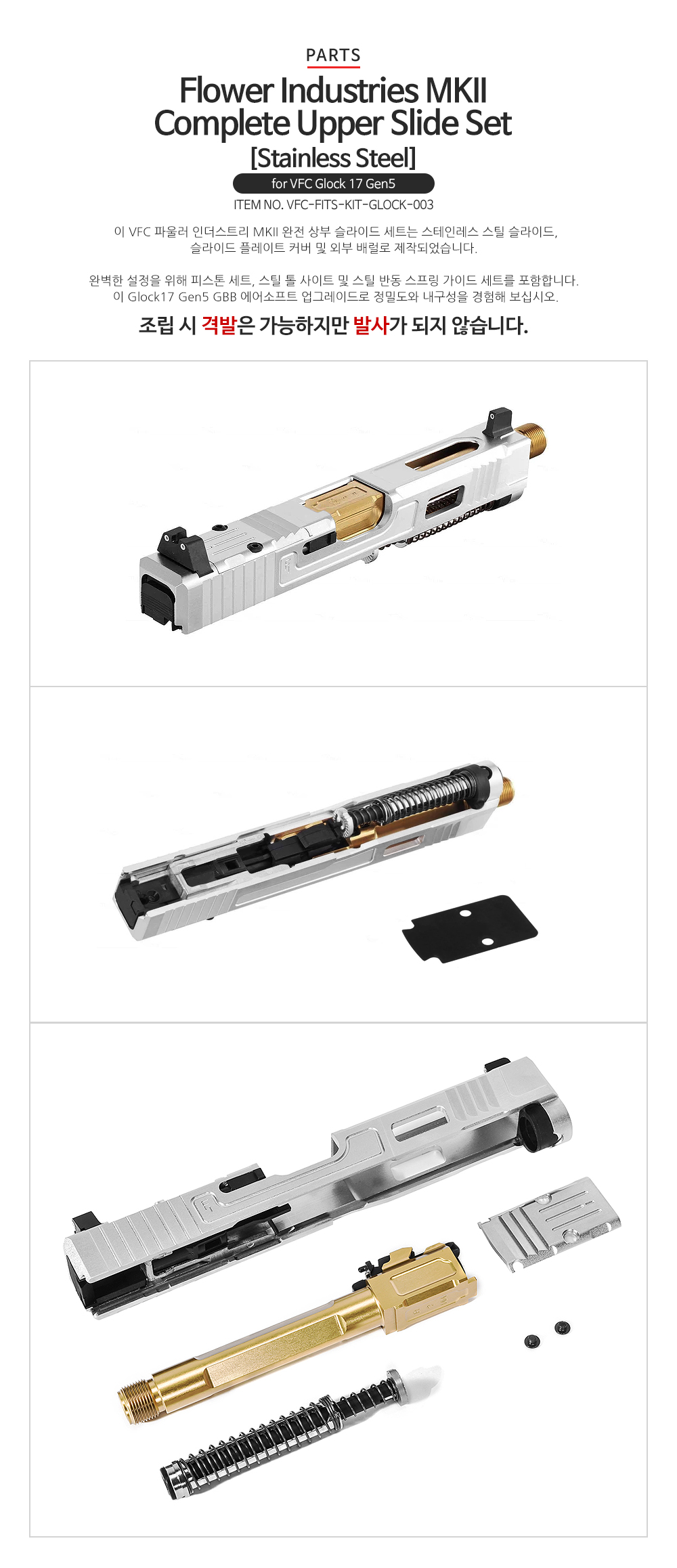 Flower Industries VFC Glock17 Gen5 MKII Complete Upper Slide Replacement [ Stainless Steel ]-